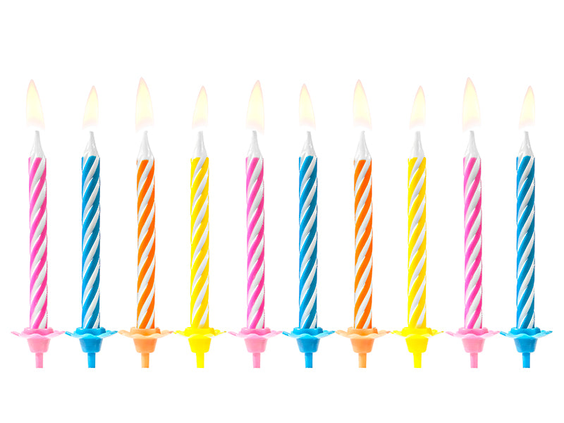 Dryžuotos gimtadienio žvakutės, 6 cm, (10 vnt.)