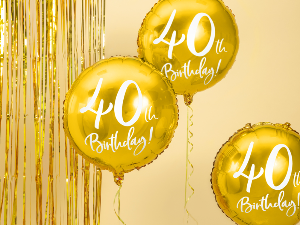 Apvalus, aukso spalvos jubiliejinis balionas.