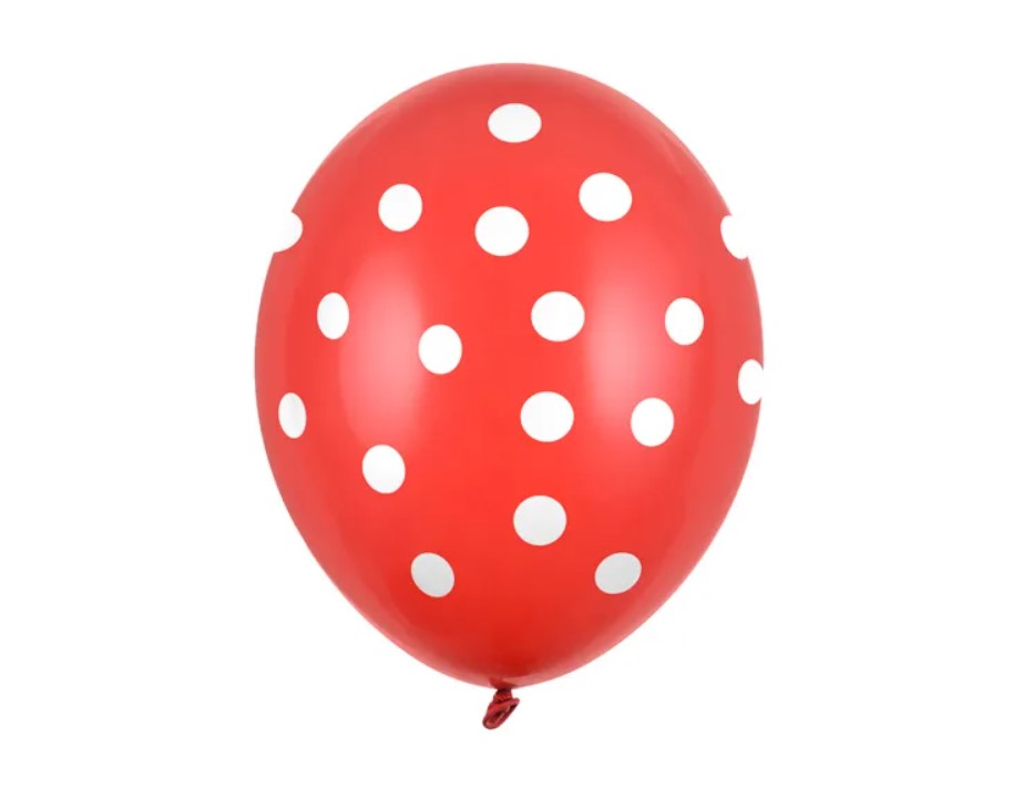 Lateksinis balionas su taškeliais, raudona/balta, 30 cm