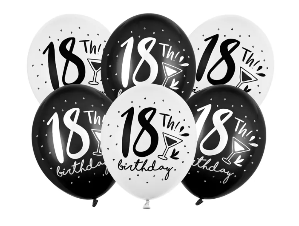 Lateksinių balionų rinkinys "18-th", 6 vnt., 30 cm