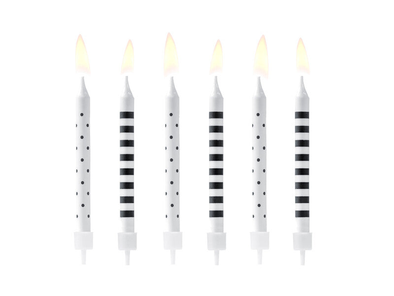 Spalvotos gimtadienio žvakutės "Juoda-balta" (6 vnt.)